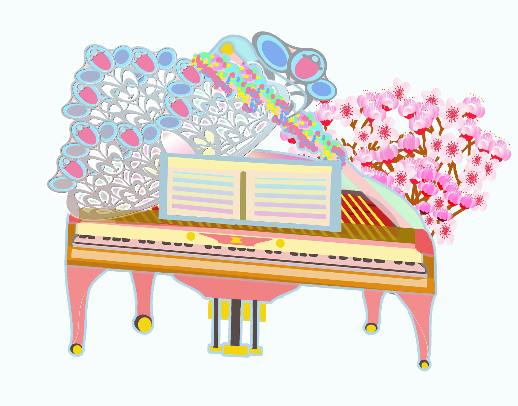 小菁:(看了,傻眼)這麼大喔??(喝口瑪奇朵)。。。(就再收到小毅的簡訊)。。。(打開看混合豎琴的立式鋼琴)。。。真驚人。。。(回覆小毅)謝啦!琴聲應該很特別吧??
